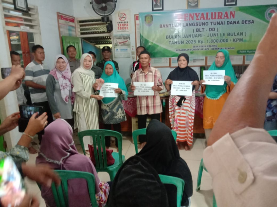 melalui Musyawarah Desa sesuai dengan kriteria yang ditetapkan dalam peraturan perundang-undangan, Pemerintah Desa Pekik Nyaring telah melakukan kegiatan penyaluran Bantuan Langsung Tunai Dana Desa ( BLT DD ) sejak bulan Januari hingga Bulan Desember tahun 2025.